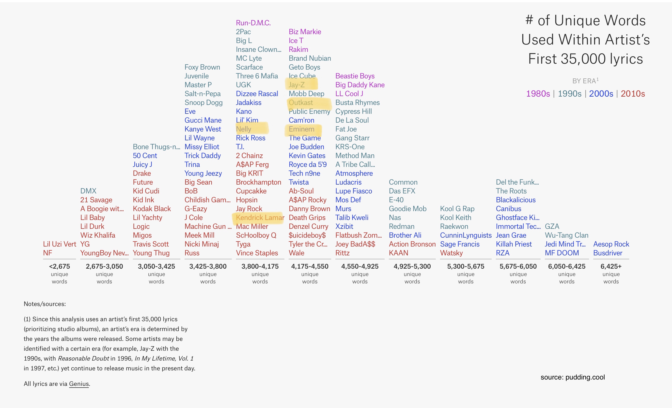 Take the genre of hip hop. You have Tupac who wrote in a simple poetic voice before adapting to an aggressive prose. Outkast brought the south to the forefront with a style that was unapologetically Atlanta.